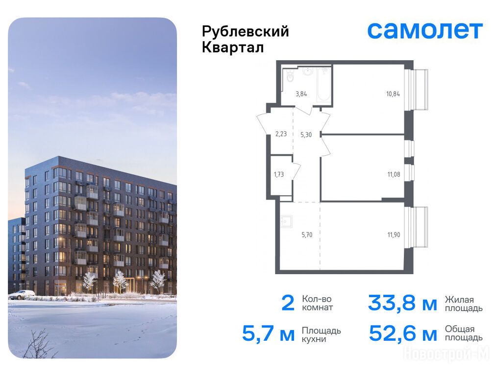 Продается двухкомнатная квартира в новостройке ЖК «Рублевский Квартал» по адресу Московская область, Одинцовский район, Горское С/П, Лайково с., ул. Строителей, корп. 54. Общая площадь квартиры - 52.62 кв. м. Тип проекта, по которому построен дом — Монолитно-кирпичный, компания-застройщик — ООО СЗ «Самолет-Лайково», Группа «Самолет». Стоимость квартиры — 12 782 743 руб. Способы оплаты можно уточнить у продавца. Срок сдачи — 1 квартал 2026. Более подробная информация по телефону.