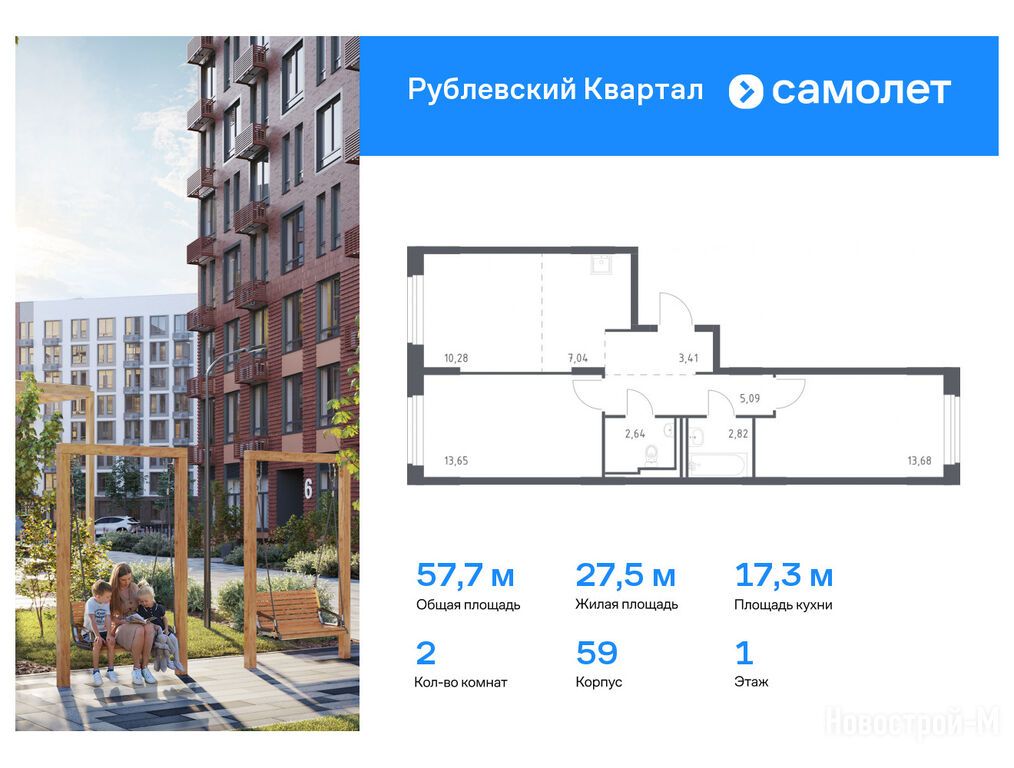 Продается двухкомнатная квартира в новостройке ЖК «Рублевский Квартал» по адресу Московская область, Одинцовский район, Горское С/П, Лайково с., ЖК «Рублевский Квартал», корп. 60. Общая площадь квартиры - 57.7 кв. м. Тип проекта, по которому построен дом — Монолитно-кирпичный, компания-застройщик — ООО СЗ «Самолет-Лайково», Группа «Самолет». Стоимость квартиры — 15 904 751 руб. Способы оплаты можно уточнить у продавца. Более подробная информация по телефону.