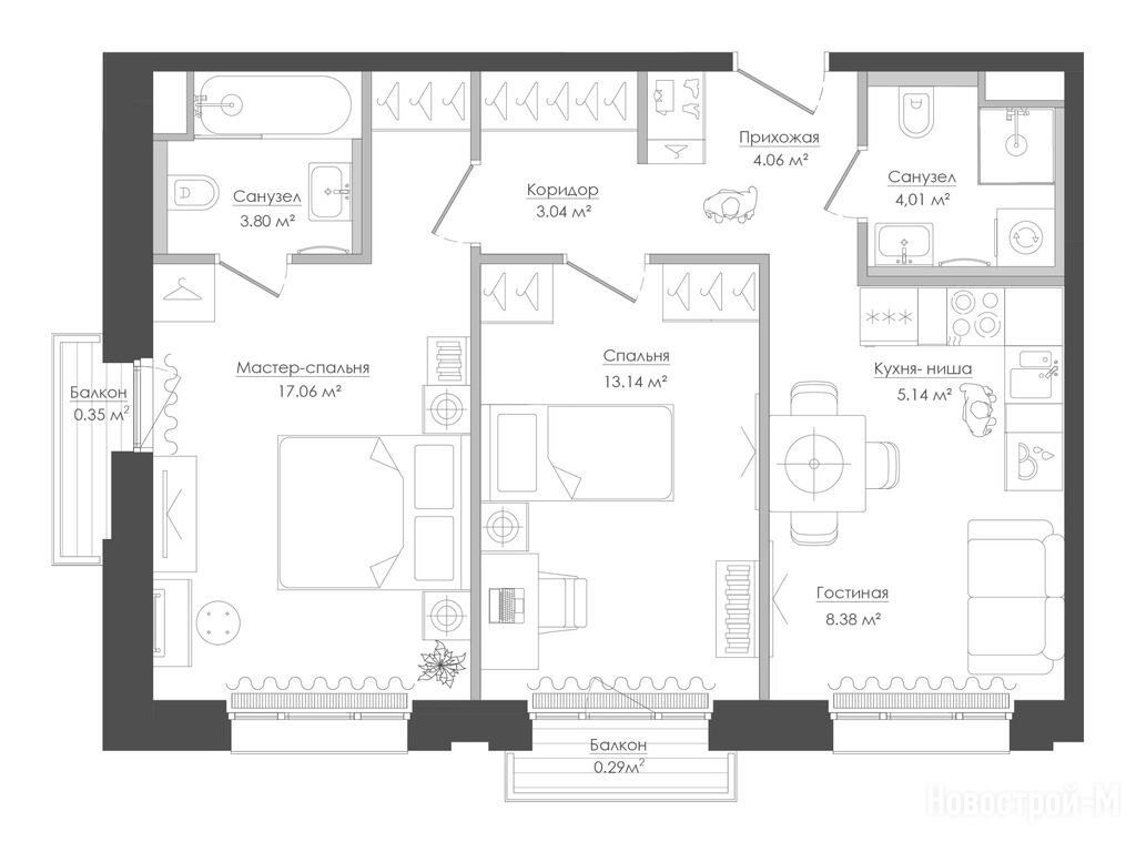 Выбрали квартиру в Селигере, так как хорошие планировки в жк, все комнаты правильной формы, никаких странных форм, от которых толку никакого, только площадь съедают, а тут 40 квадратов, или 60,так это полезная площадь
