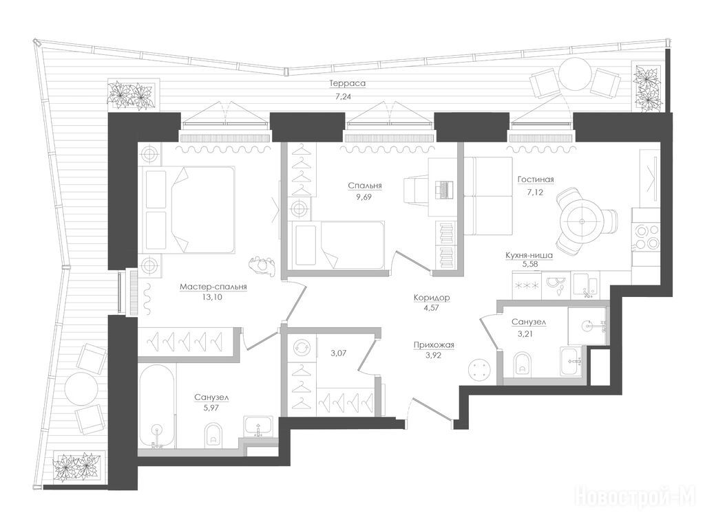 Выбрали квартиру в Селигере, так как хорошие планировки в жк, все комнаты правильной формы, никаких странных форм, от которых толку никакого, только площадь съедают, а тут 40 квадратов, или 60,так это полезная площадь