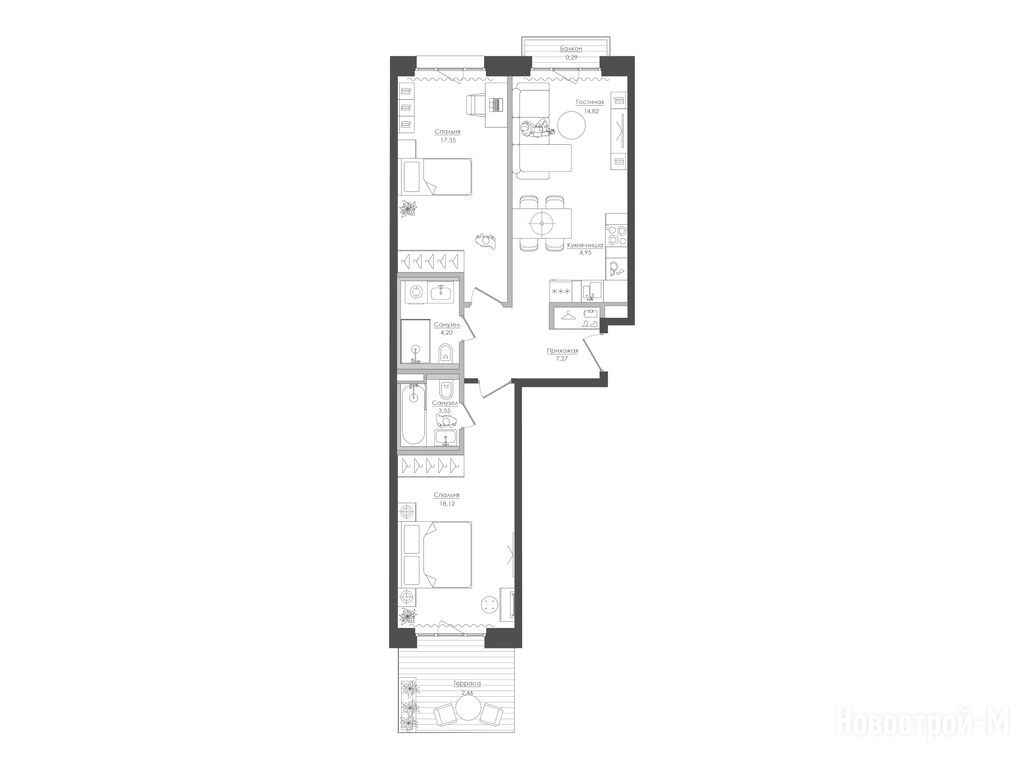 Выбрали квартиру в Селигере, так как хорошие планировки в жк, все комнаты правильной формы, никаких странных форм, от которых толку никакого, только площадь съедают, а тут 40 квадратов, или 60,так это полезная площадь