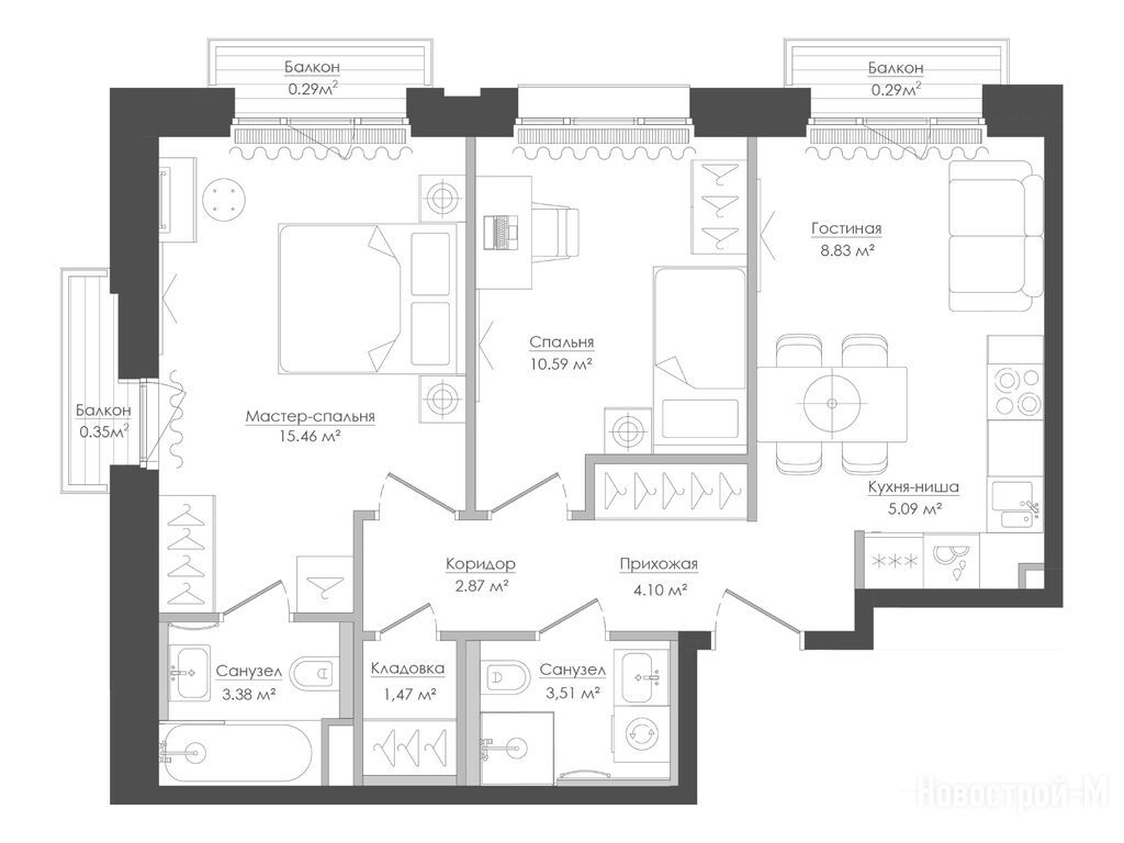 Выбрали квартиру в Селигере, так как хорошие планировки в жк, все комнаты правильной формы, никаких странных форм, от которых толку никакого, только площадь съедают, а тут 40 квадратов, или 60,так это полезная площадь