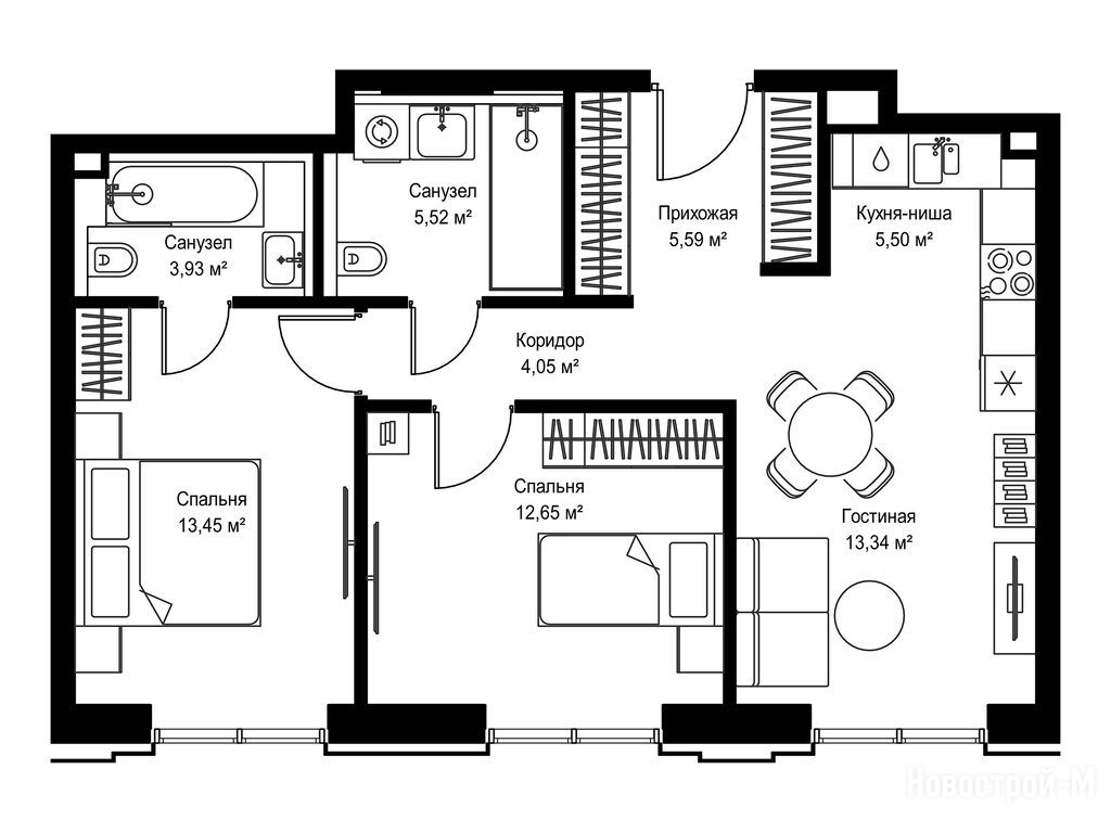 Выбрали квартиру в Селигере, так как хорошие планировки в жк, все комнаты правильной формы, никаких странных форм, от которых толку никакого, только площадь съедают, а тут 40 квадратов, или 60,так это полезная площадь