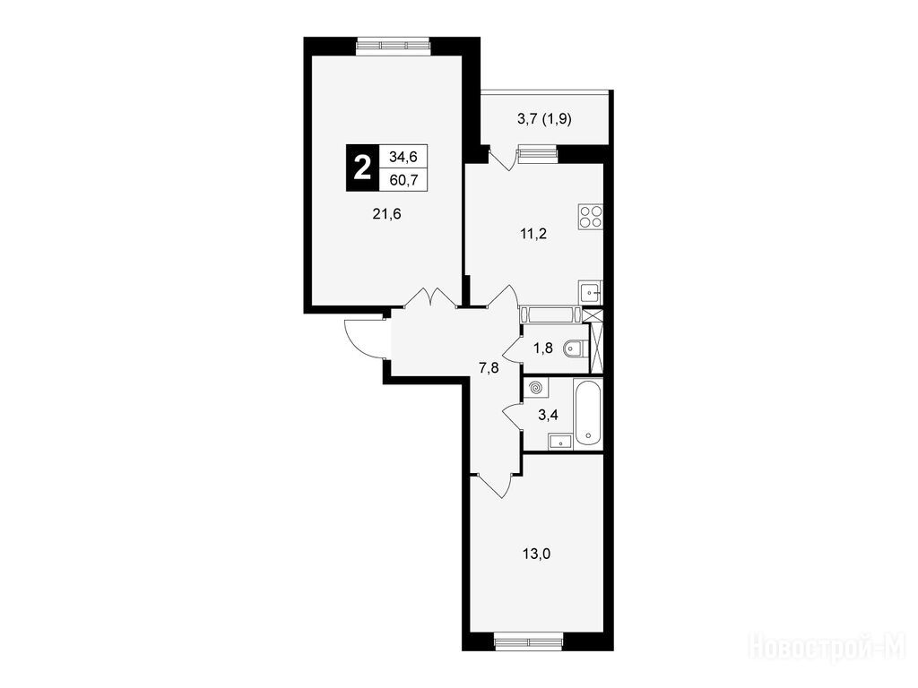 2-комн. квартира 60,60 м2 8 787 000