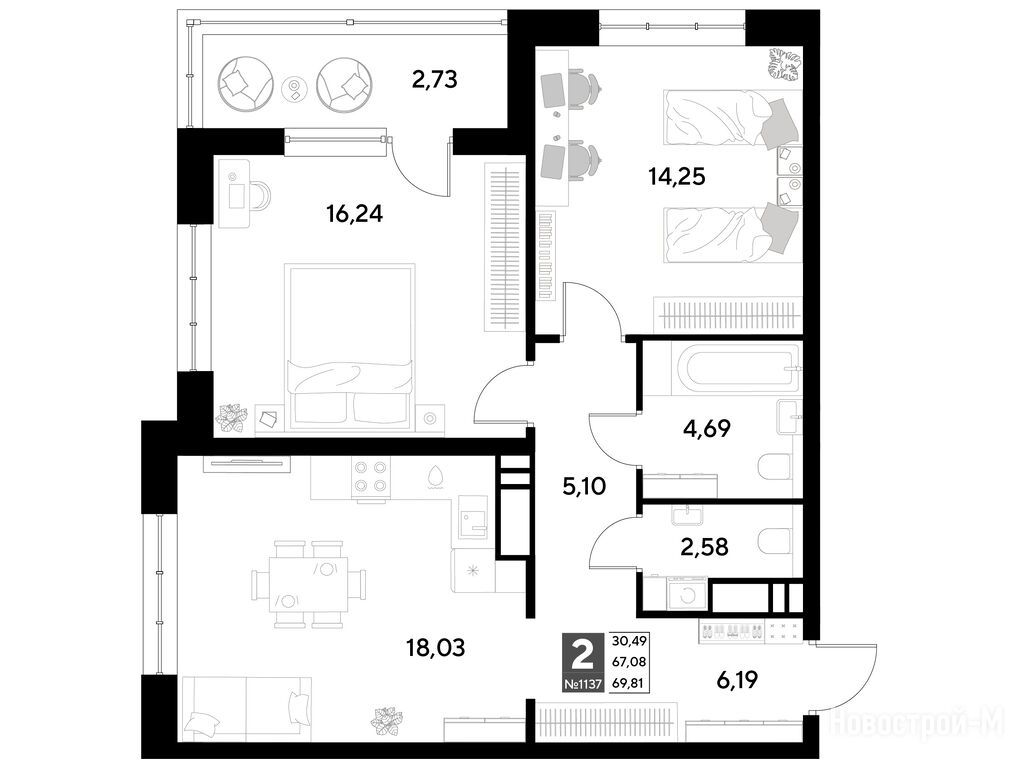 Продается двухкомнатная квартира в новостройке ЖК «Снегири» по адресу Омская область, Омск, ул. Светловская, корп. 2. Общая площадь квартиры - 69.81 кв. м. Тип проекта, по которому построен дом — Монолитно-кирпичный, компания-застройщик — DOGMA, ООО СЗ ДОГМА-ОМСК. Стоимость квартиры — 9 612 837 руб. Способы оплаты можно уточнить у продавца. Срок сдачи — 2 квартал 2027. Более подробная информация по телефону.