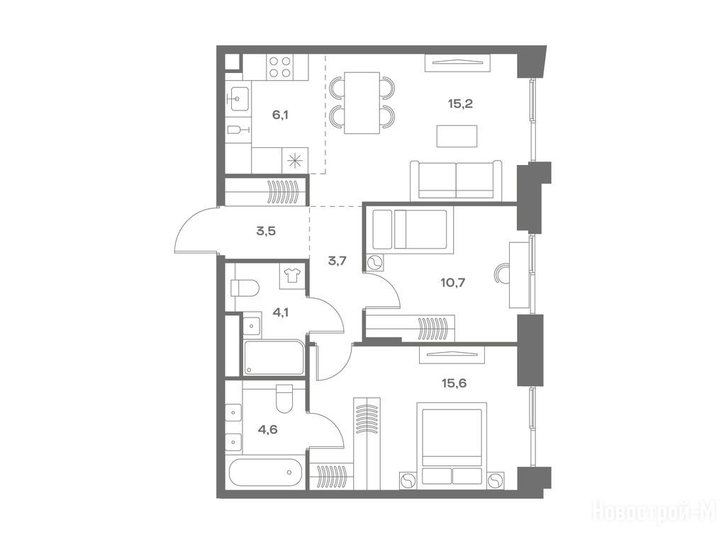 А планировки, так вообще. И два окна в спальне в пол, и кому это мало - окно в ванной комнате.