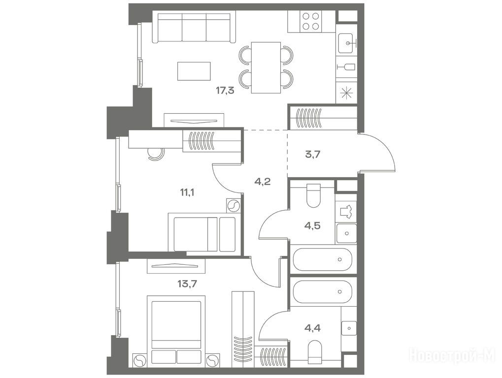 А планировки, так вообще. И два окна в спальне в пол, и кому это мало - окно в ванной комнате.