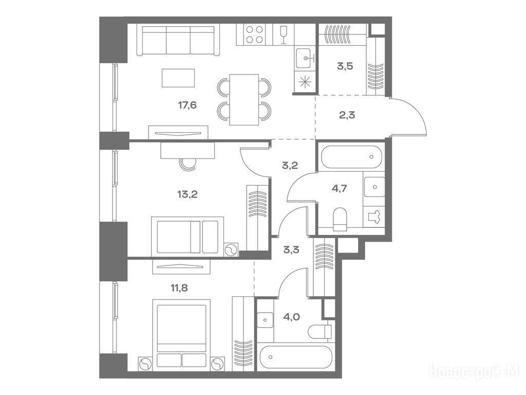 А планировки, так вообще. И два окна в спальне в пол, и кому это мало - окно в ванной комнате.