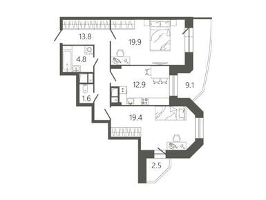 3-комн. квартира 89,60 м2 13 440 000
