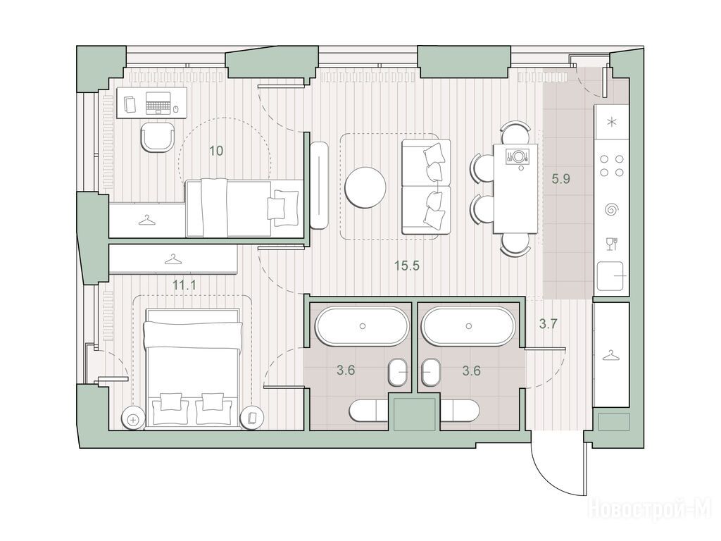 Нормальное окружение, район застраивается, скоро будет школа. До метро можно дойти пешком. Поездили посмотрели еще новостройки, но выбрали Среду, здесь больше понравились планировки квартир.