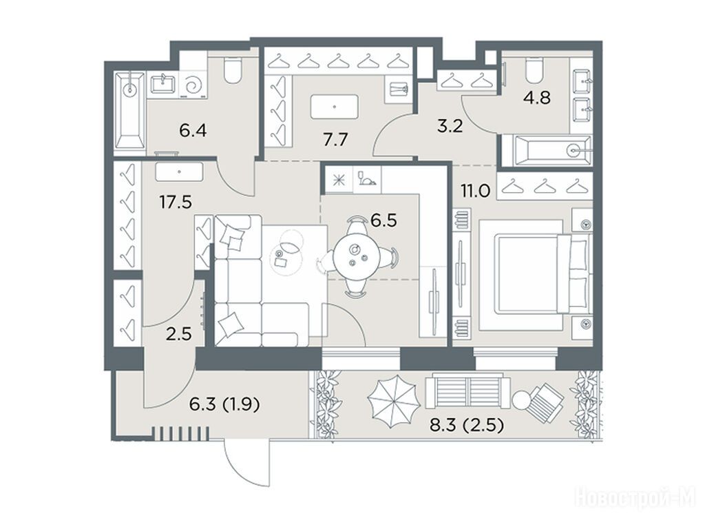 Тут шикарные квартиры - от студий до пятикомнатных пентхаусов, площадь от 28 до 103 кв. м. Во всех квартирах увеличенная площадь остекления, большие кухни, просторные гостиные и продуманные гардеробные. Есть варианты с мастер-спальнями, угловыми окнами и постирочными, а еще квартиры со вторым светом, каминными залами, личными террасами, патио, зимними садами, тремя спальнями и дополнительными санузлами.