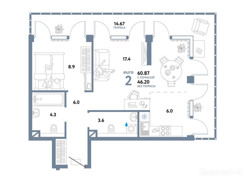 Продается двухкомнатная квартира в новостройке ЖК «Страна. Озерная» по адресу Москва, ЗАО, Очаково-Матвеевское, ул. Озёрная 42-44. Общая площадь квартиры - 60.87 кв. м. Тип проекта, по которому построен дом — Монолит, компания-застройщик — Страна Девелопмент. Стоимость квартиры — 34 190 000 руб. Способы оплаты можно уточнить у продавца. Срок сдачи — 2 квартал 2026. Более подробная информация по телефону.