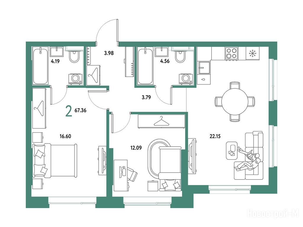 Продается двухкомнатная квартира в новостройке ЖК «Страна. Парковая» по адресу Московская область, Мытищи городской округ, Мытищи, ул. Комарова-Институтская, корп. Дом Васнецов. Общая площадь квартиры - 67.36 кв. м. Тип проекта, по которому построен дом — Монолитно-каркасный, компания-застройщик — Страна Девелопмент. Стоимость квартиры — 22 060 000 руб. Способы оплаты можно уточнить у продавца. Срок сдачи — 4 квартал 2027. Более подробная информация по телефону.