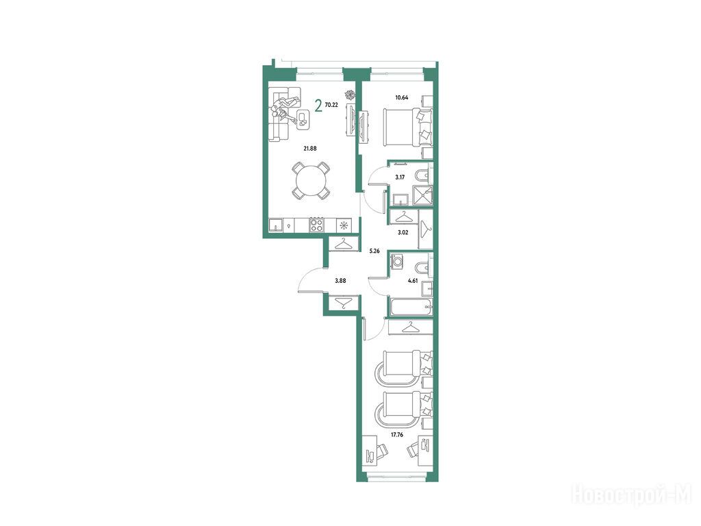 Продается двухкомнатная квартира в новостройке ЖК «Страна. Парковая» по адресу Московская область, Мытищи городской округ, Мытищи, ул. Комарова-Институтская, корп. Дом Васнецов. Общая площадь квартиры - 70.22 кв. м. Тип проекта, по которому построен дом — Монолитно-каркасный, компания-застройщик — Страна Девелопмент. Стоимость квартиры — 24 410 000 руб. Способы оплаты можно уточнить у продавца. Срок сдачи — 4 квартал 2027. Более подробная информация по телефону.