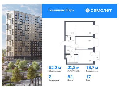 Продается двухкомнатная квартира в новостройке ЖК «Томилино Парк» по адресу Московская область, Люберцы городской округ, Томилино пос., ЖК «Томилино Парк», корп. 6.2. Общая площадь квартиры - 51.2 кв. м. Тип проекта, по которому построен дом — Монолитно-кирпичный, компания-застройщик — ООО СЗ «Самолет-Томилино», Группа «Самолет». Стоимость квартиры — 13 523 712 руб. Способы оплаты можно уточнить у продавца. Более подробная информация по телефону.