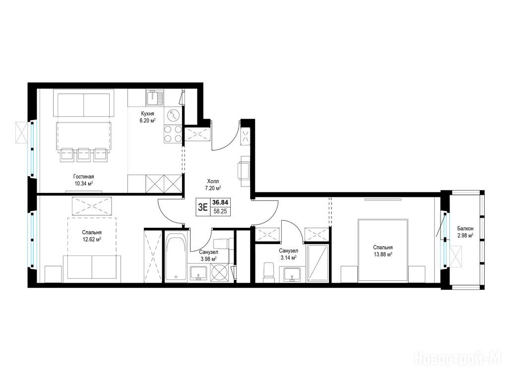 Продается двухкомнатная квартира в новостройке ЖК «У реки. Эко Видное 2.0» по адресу Московская область, Ленинский городской округ, Горки Ленинские Г/П, Сапроново деревня, квартал Центральный, д. 7. Общая площадь квартиры - 58 кв. м. Тип проекта, по которому построен дом — Панельный, компания-застройщик — Купелинка Девелопмент. Стоимость квартиры — 13 760 384 руб. Способы оплаты можно уточнить у продавца. Более подробная информация по телефону.