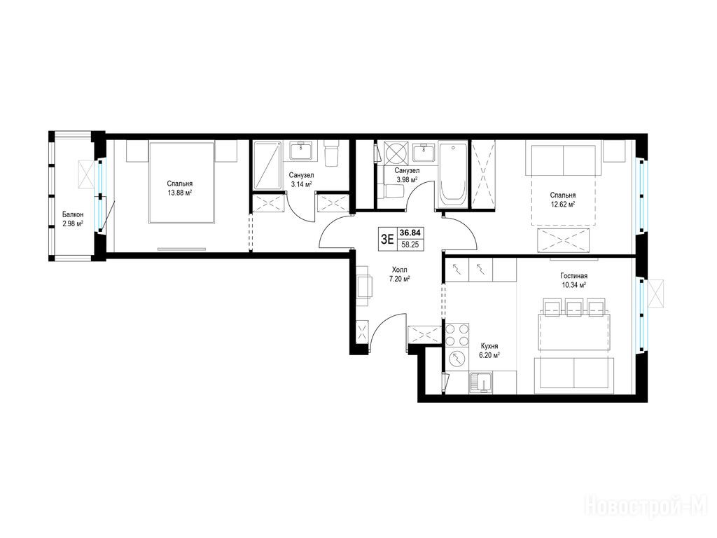 Продается двухкомнатная квартира в новостройке ЖК «У реки. Эко Видное 2.0» по адресу Московская область, Ленинский городской округ, Горки Ленинские Г/П, Сапроново деревня, квартал Центральный, д. 7. Общая площадь квартиры - 58.7 кв. м. Тип проекта, по которому построен дом — Панельный, компания-застройщик — Купелинка Девелопмент. Стоимость квартиры — 10 962 126 руб. Способы оплаты можно уточнить у продавца. Более подробная информация по телефону.