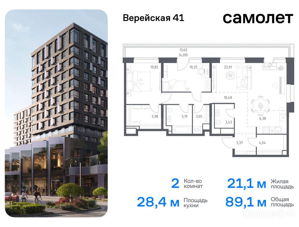 Продается двухкомнатная квартира в новостройке ЖК «Верейская 41» по адресу Москва, ЗАО, Можайский, корпус 4.2. Общая площадь квартиры - 89.09 кв. м. Тип проекта, по которому построен дом — Монолитно-кирпичный, компания-застройщик — АО СЗ «Самолет-Верейская», Группа «Самолет». Стоимость квартиры — 50 036 953 руб. Способы оплаты можно уточнить у продавца. Срок сдачи — 1 квартал 2026. Более подробная информация по телефону.