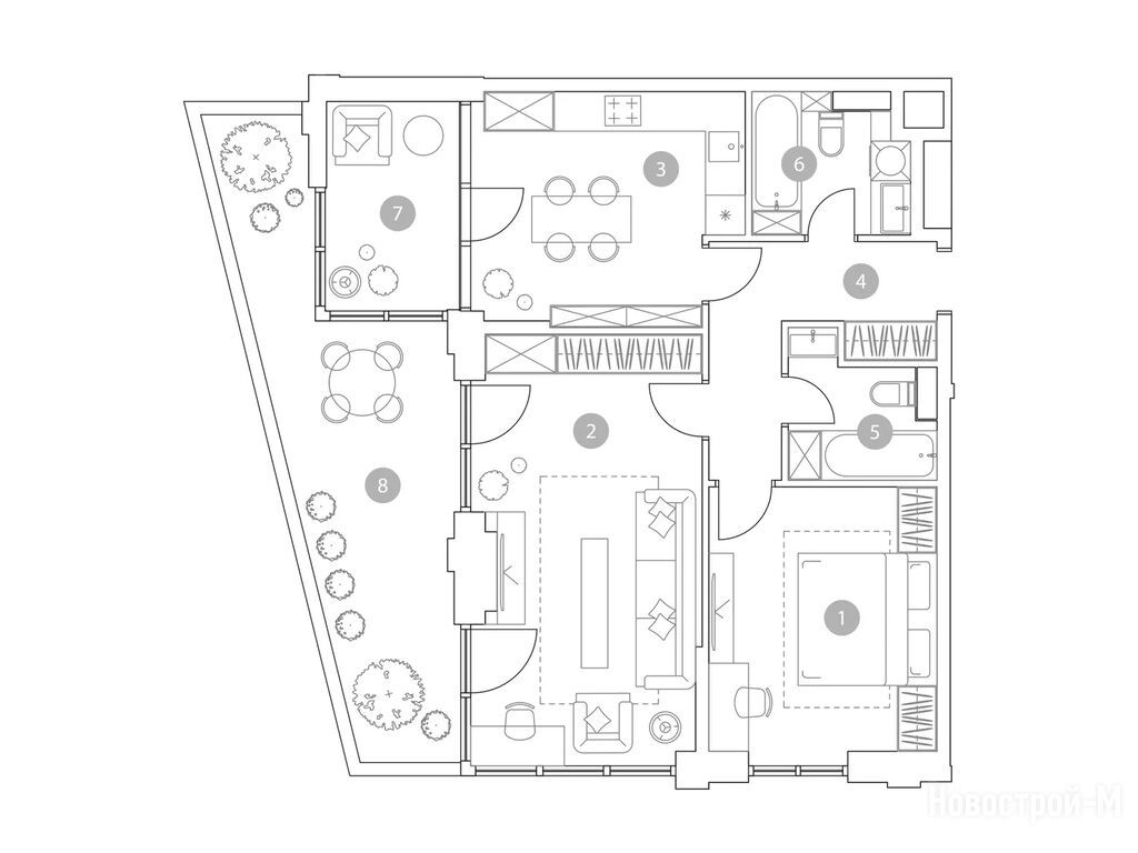 Выбирали квартиру с учетом, что у нас еще маленький ребенок. Плюс этого комплекса, что будет свой детсад, игровые комнаты внутри, а во дворе целый детский городок под навесом и даже скалодром. Для детского физ.развития это прям то, что надо.
