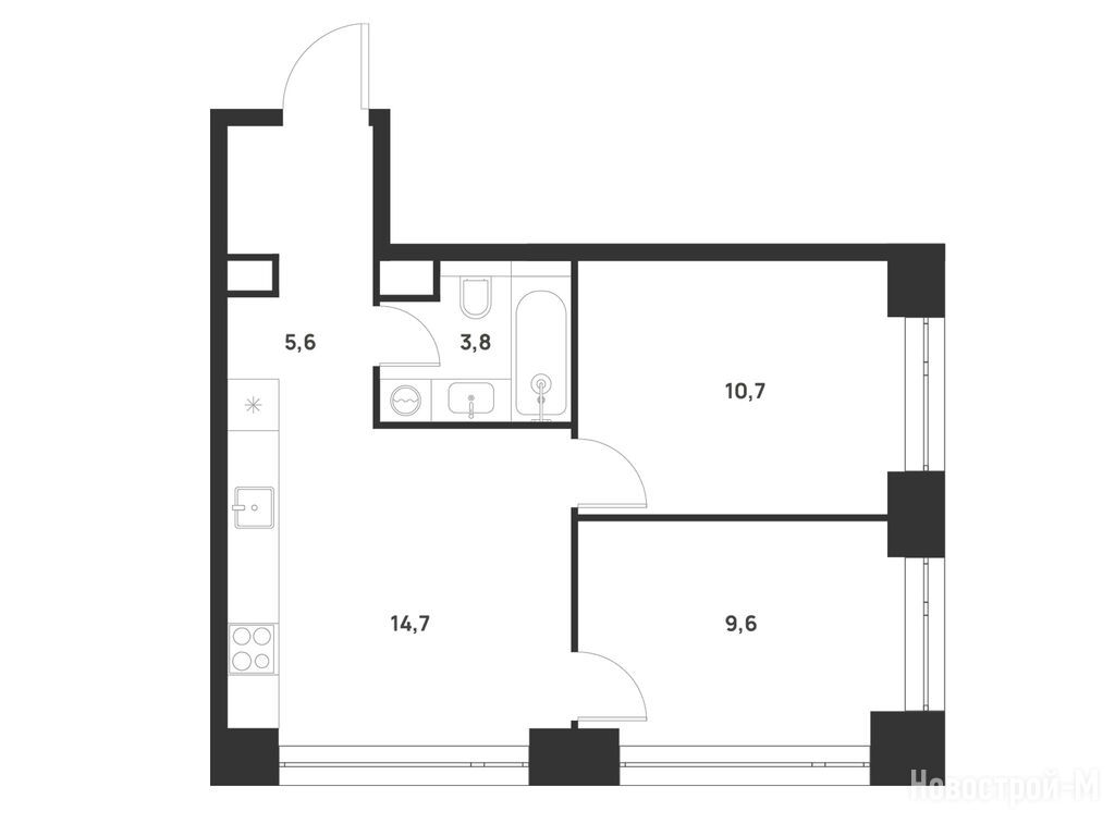 Данная квартира является лидером продаж среди двухкомнатных квартир в ЖК Voice Towers (Войс Тауэрс) по данным Росреестра