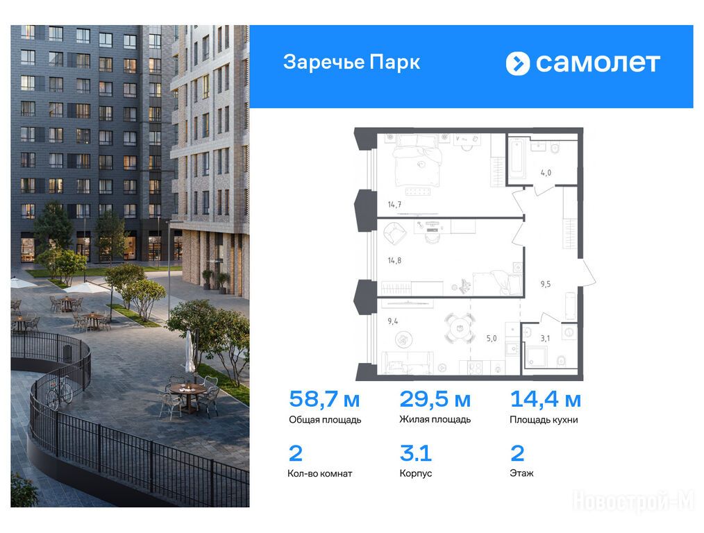 Интересный комплекс, локация здесь хорошая, цена тоже более чем адекватная. Рядом Мещерский парк, недалеко Метро и в целом в районе уже есть сложившаяся инфраструктура.
