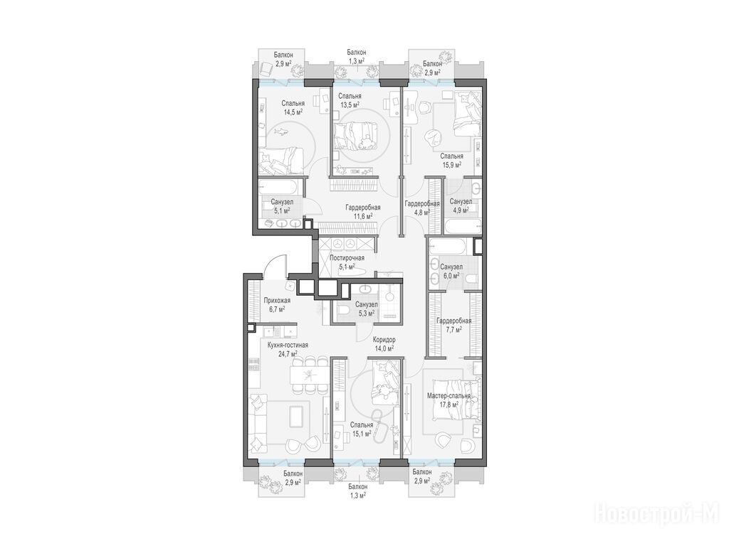 Продается многокомнатная квартира в новостройке Элитный квартал «Тишинский бульвар» по адресу Москва, ЦАО, Пресненский, Пресненский р-н, пер. Электрический, корп. 5, вл. 1. Общая площадь квартиры - 179.5 кв. м. Тип проекта, по которому построен дом — Монолитно-кирпичный, компания-застройщик — Sminex. Стоимость квартиры — 297 350 000 руб. Способы оплаты можно уточнить у продавца. Срок сдачи — 4 квартал 2027. Более подробная информация по телефону.