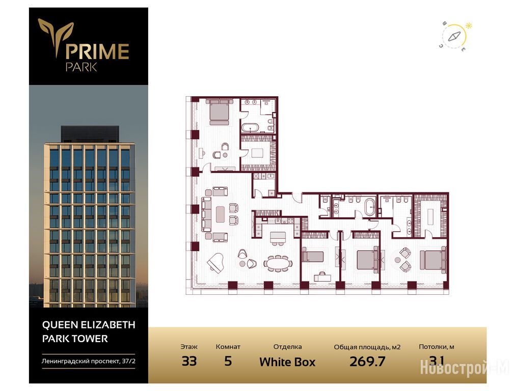Продается многокомнатная квартира в новостройке Жилой квартал Prime Park (Прайм Парк) по адресу Москва, САО, Хорошевский, Ленинградский пр-т, 37/2. Общая площадь квартиры - 269.5 кв. м. Тип проекта, по которому построен дом — Монолит, компания-застройщик — Optima Development. Стоимость квартиры — 348 199 223 руб. Способы оплаты можно уточнить у продавца. Более подробная информация по телефону.