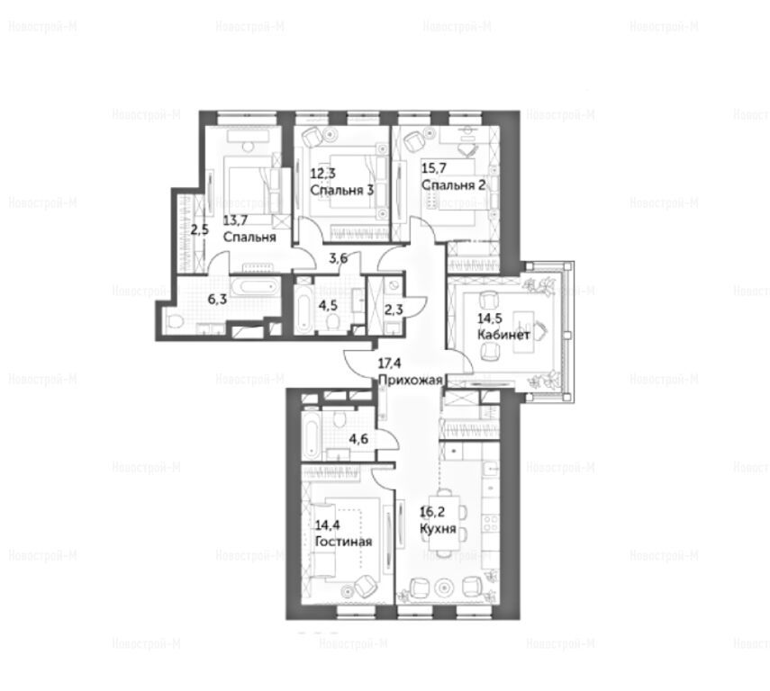 И мы присматриваем квартиру в этом ЖК. Понравились планировки. Удобно, что из хозяйской спальни будет выход в ванную, гардеробную и на балкон.