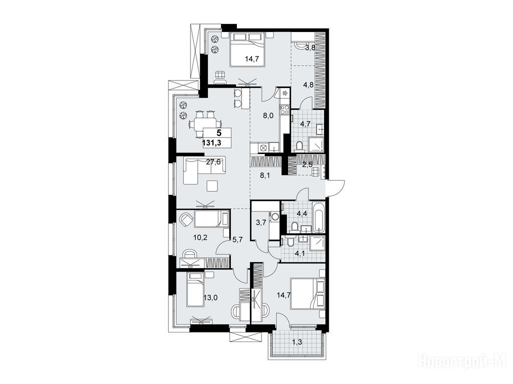 Продается многокомнатная квартира в новостройке ЖК «Дзен-кварталы» по адресу Москва, ТиНАО, Новомосковский АО, Сосенское С/П, ул. Александры Монаховой, корп. 5.2. Общая площадь квартиры - 131.3 кв. м. Тип проекта, по которому построен дом — Монолитно-кирпичный,Железобетон, компания-застройщик — ООО «А101». Стоимость квартиры — 42 973 177 руб. Способы оплаты можно уточнить у продавца. Срок сдачи — 4 квартал 2027. Более подробная информация по телефону.
