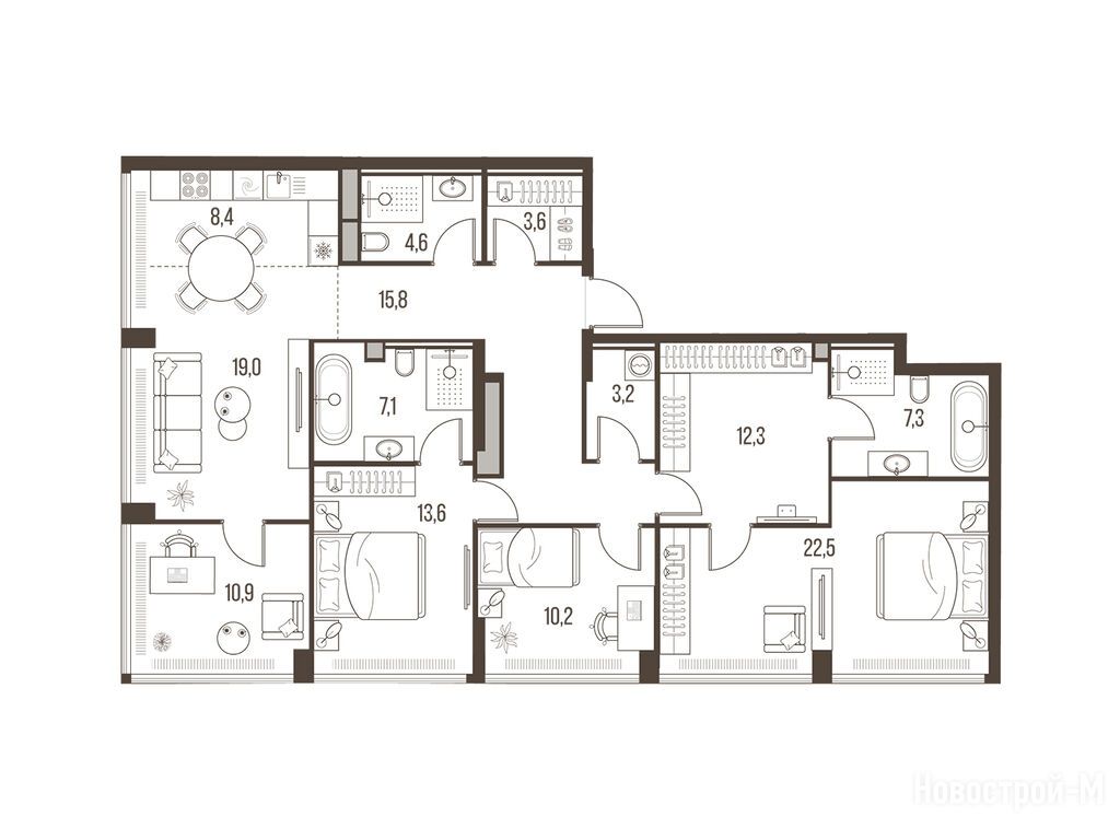 Продается многокомнатная квартира в новостройке ЖК High Life (Хай Лайф) по адресу Москва, ЮАО, Даниловский, ул. Летниковская, д.11/10с22. Общая площадь квартиры - 138.5 кв. м. Тип проекта, по которому построен дом — Монолит, компания-застройщик — ГК Пионер. Стоимость квартиры — 203 581 150 руб. Способы оплаты можно уточнить у продавца. Срок сдачи — 4 квартал 2027. Более подробная информация по телефону.