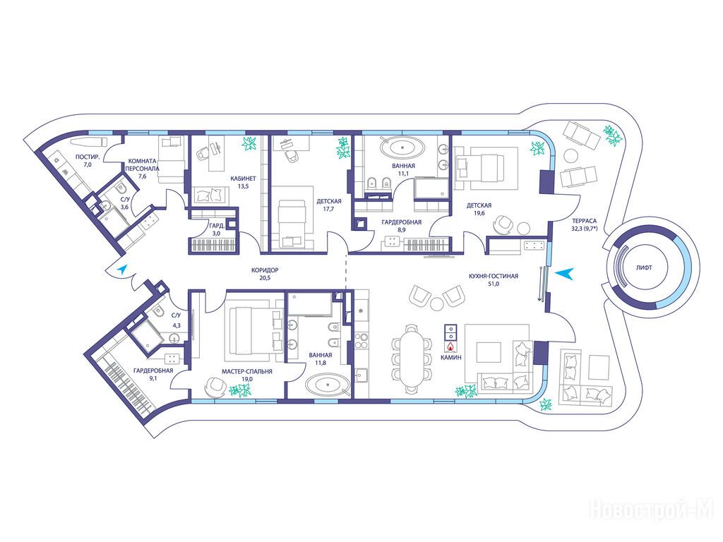 Из плюсов могу выделить высокие потолки от 3,20 метров, умный дом уже входит, видовые террасы. Контингент приличный. То есть тут покупаешь даже не столько недвижку, сколько вклад в будущее своих детей с приличным окружением. Человек красит место, как говорится.