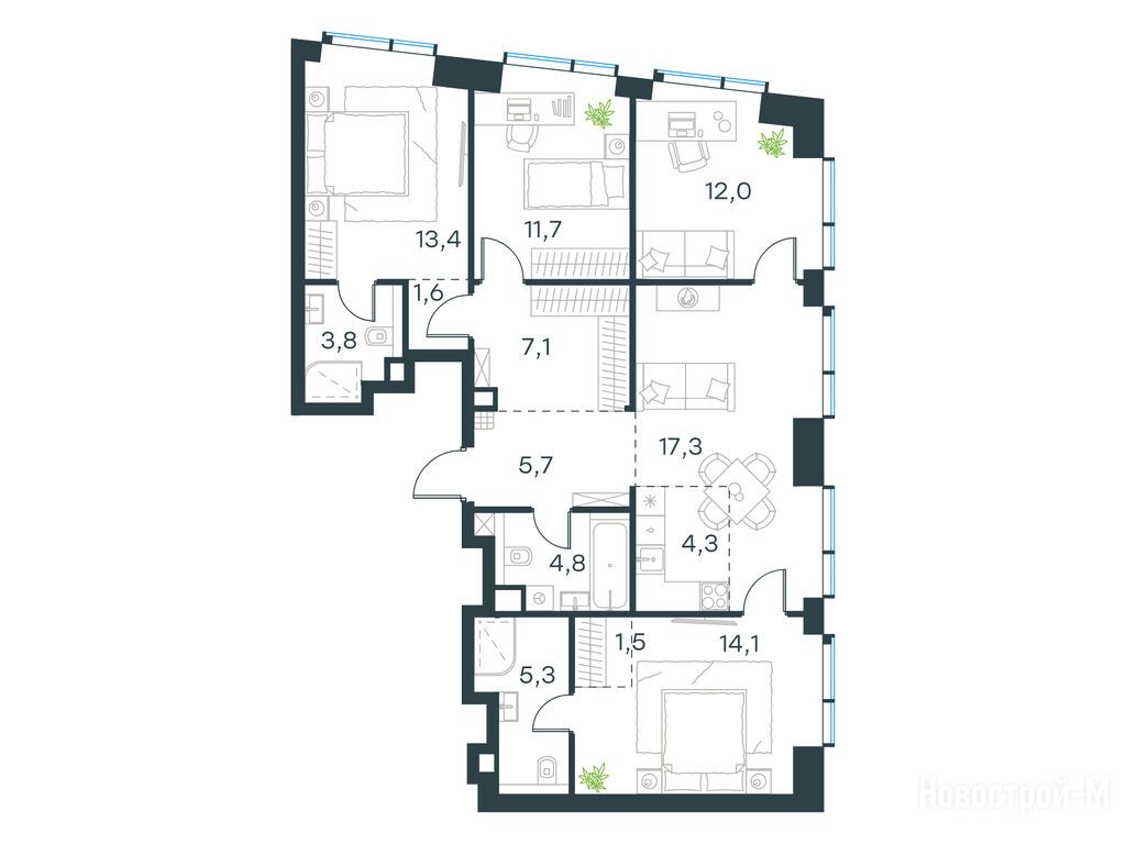 Продается многокомнатная квартира в новостройке Level Павелецкая Сити по адресу Москва, ЮАО, Даниловский, ул. Дубининская, вл. 69, корп. 15. Общая площадь квартиры - 102.6 кв. м. Тип проекта, по которому построен дом — Монолит,Монолитно-кирпичный, компания-застройщик — Level Group (Левел Групп). Стоимость квартиры — 90 541 745 руб. Способы оплаты можно уточнить у продавца. Срок сдачи — 4 квартал 2027. Более подробная информация по телефону.