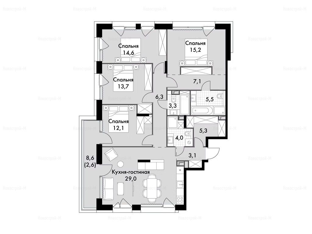 Продается многокомнатная квартира в новостройке ЖК The Lake (Лэйк) по адресу Москва, СВАО, Свиблово, ул. Снежная улица, вл. 22, корп. 3. Общая площадь квартиры - 121.8 кв. м. Тип проекта, по которому построен дом — Монолитно-кирпичный, компания-застройщик — ГК ФСК. Стоимость квартиры — 71 871 744 руб. Способы оплаты можно уточнить у продавца. Срок сдачи — 4 квартал 2025. Более подробная информация по телефону.