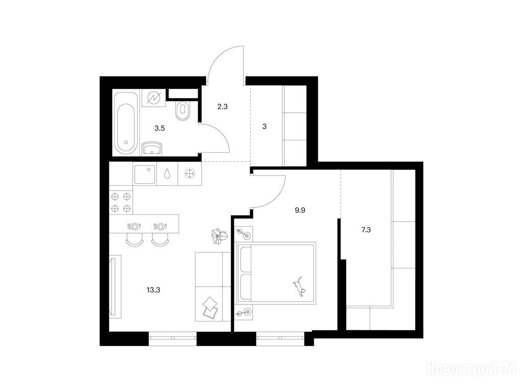 Взяли двушку. Прикольно, что уже на 59 квадратов идут 2 с/у. Сначала смутило, что без балкона, но вообще вместо них кладовые делают. Реально удобно, не надо квартиру хламом нагружать. Поэтому в планах еще кладовку покупать.