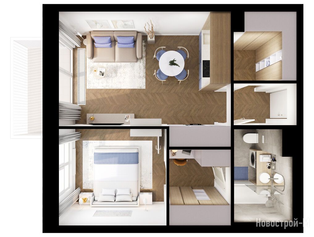 Взяли двушку. Прикольно, что уже на 59 квадратов идут 2 с/у. Сначала смутило, что без балкона, но вообще вместо них кладовые делают. Реально удобно, не надо квартиру хламом нагружать. Поэтому в планах еще кладовку покупать.