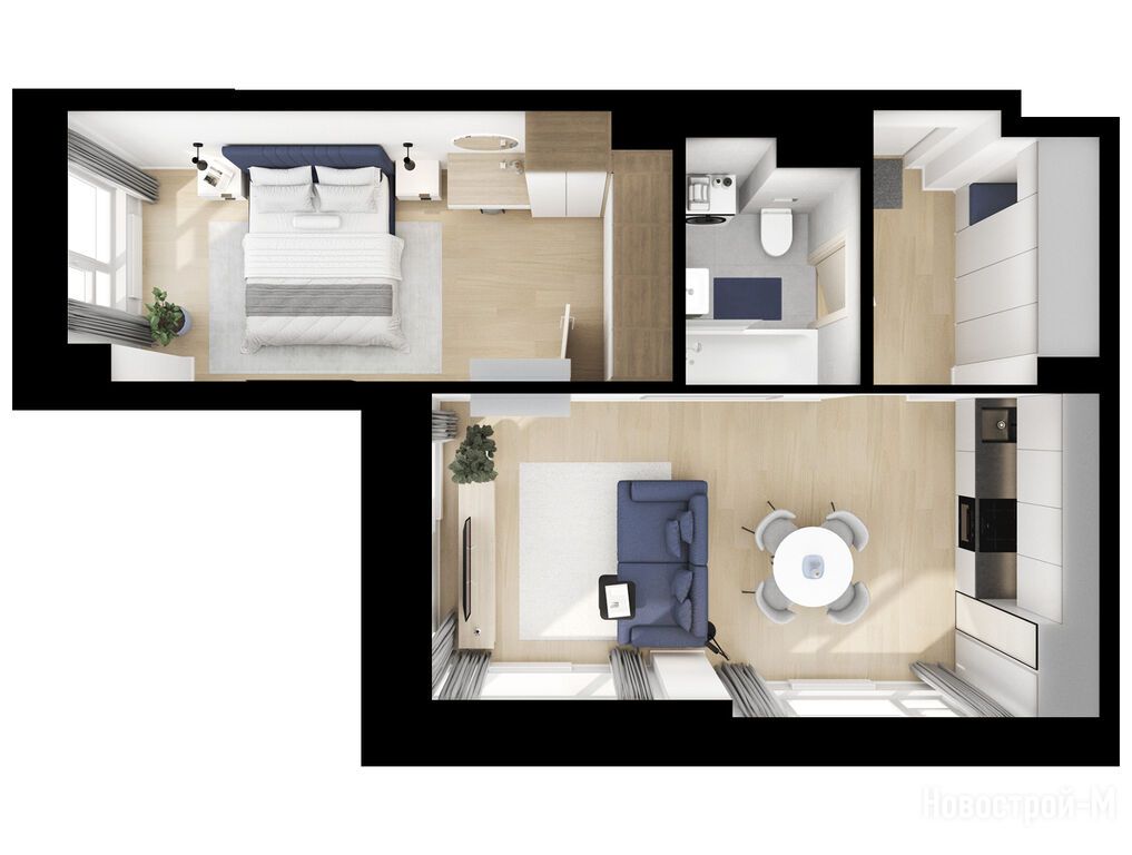 Взяли двушку. Прикольно, что уже на 59 квадратов идут 2 с/у. Сначала смутило, что без балкона, но вообще вместо них кладовые делают. Реально удобно, не надо квартиру хламом нагружать. Поэтому в планах еще кладовку покупать.