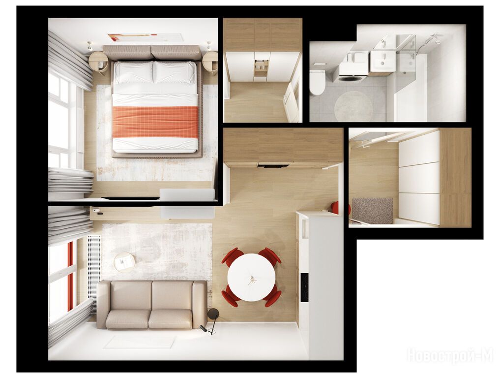 Взяли двушку. Прикольно, что уже на 59 квадратов идут 2 с/у. Сначала смутило, что без балкона, но вообще вместо них кладовые делают. Реально удобно, не надо квартиру хламом нагружать. Поэтому в планах еще кладовку покупать.