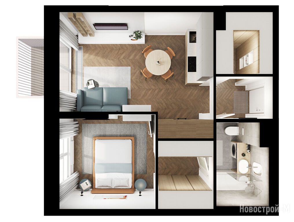 Взяли двушку. Прикольно, что уже на 59 квадратов идут 2 с/у. Сначала смутило, что без балкона, но вообще вместо них кладовые делают. Реально удобно, не надо квартиру хламом нагружать. Поэтому в планах еще кладовку покупать.
