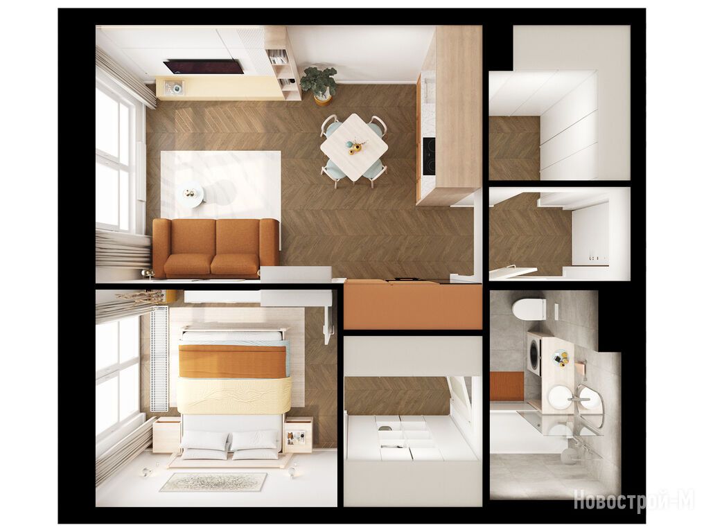 Взяли двушку. Прикольно, что уже на 59 квадратов идут 2 с/у. Сначала смутило, что без балкона, но вообще вместо них кладовые делают. Реально удобно, не надо квартиру хламом нагружать. Поэтому в планах еще кладовку покупать.