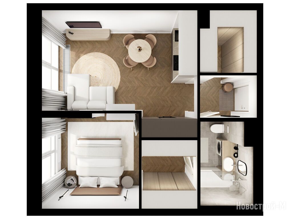 Взяли двушку. Прикольно, что уже на 59 квадратов идут 2 с/у. Сначала смутило, что без балкона, но вообще вместо них кладовые делают. Реально удобно, не надо квартиру хламом нагружать. Поэтому в планах еще кладовку покупать.