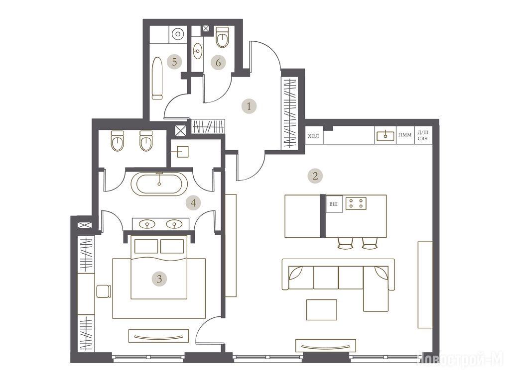 Понравилось, что здесь не только квартира, но и доступ к инфраструктуре будет от консьерж-службы до спортзала, бассейна, ресторана и тд. Все под рукой, особенно приятно будет после тяжелого рабочего дня просто спуститься вниз и отдохнуть / заняться спортом и тд