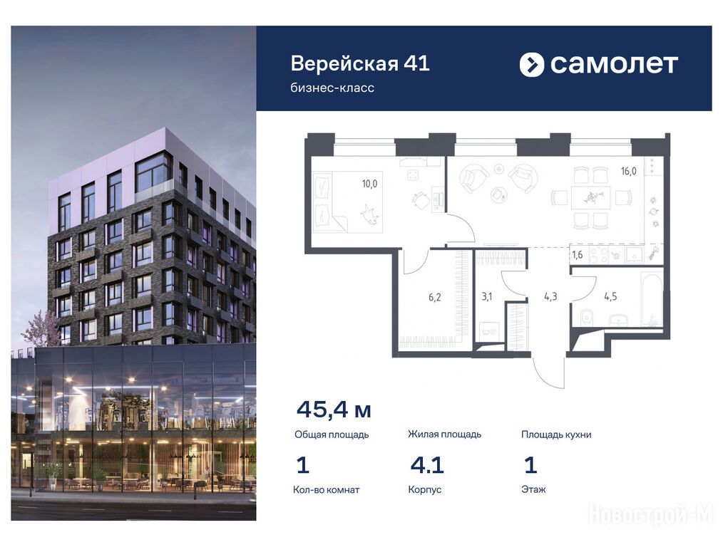 Продается однокомнатная квартира в новостройке ЖК «Верейская 41» по адресу Москва, ЗАО, Можайский, МФК «Верейская 41», корп. 4.1. Общая площадь квартиры - 45.35 кв. м. Тип проекта, по которому построен дом — Монолитно-кирпичный, компания-застройщик — АО СЗ «Самолет-Верейская», Группа «Самолет». Стоимость квартиры — 25 109 528 руб. Способы оплаты можно уточнить у продавца. Срок сдачи — 4 квартал 2025. Более подробная информация по телефону.