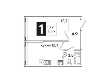 1-комн. квартира 35,50 м2 6 787 600