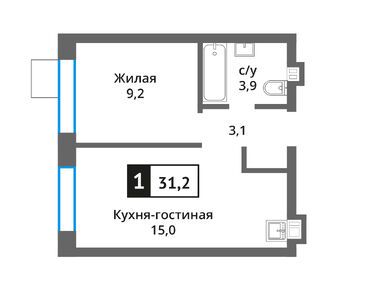 1-комн. квартира, 31.20 м2, 9 этаж
