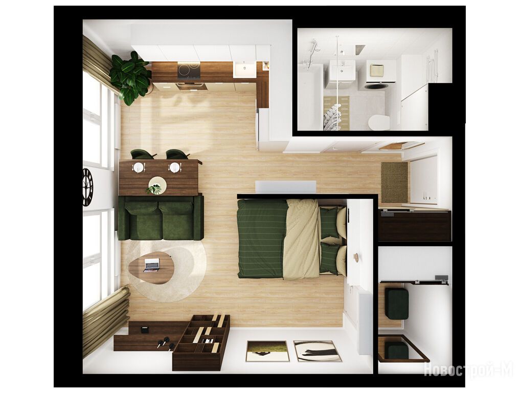 Не территории будет детский сад на 150 малышей и школа для 350 учеников. А во дворе — зелёный парк с детскими и спортивными площадками и зонами для отдыха. На первых этажах откроются магазины, кафе и другие сервисы. В общем, будет очень даже прилично