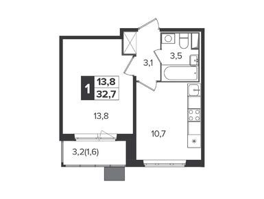 1-комн. квартира 31,50 м2 8 758 103