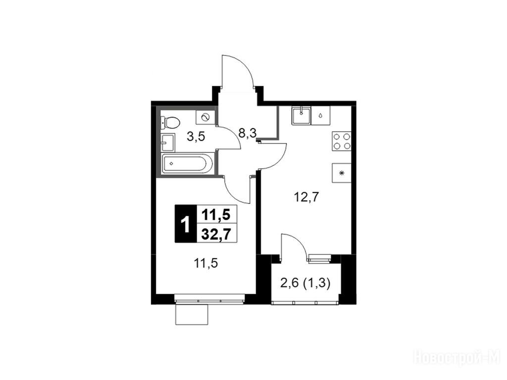 1-комн. квартира 32,60 м2 13 848 480