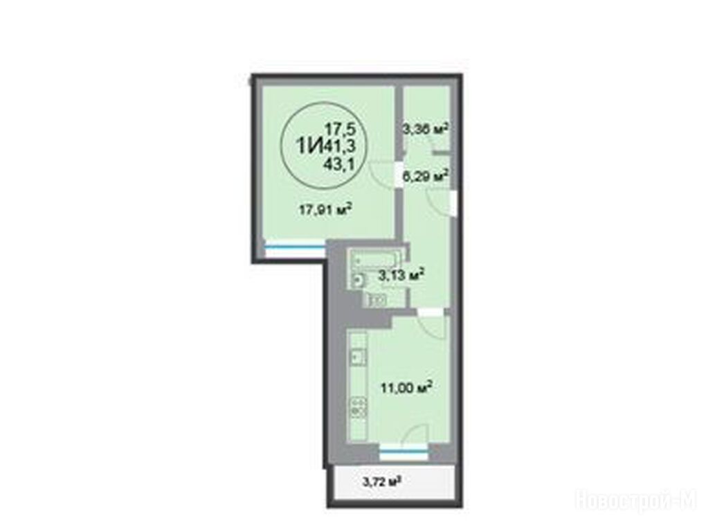 1-комн. квартира 37,90 м2 6 668 543
