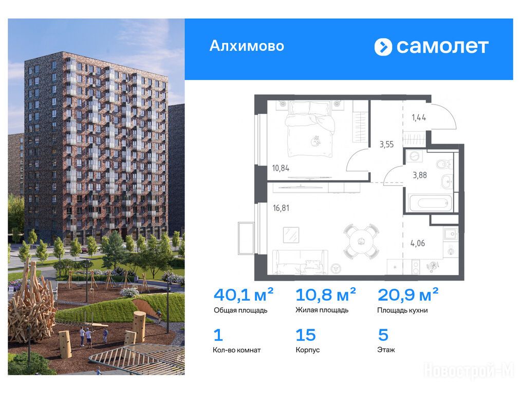Продается однокомнатная квартира в новостройке ЖК «Алхимово» по адресу Москва, ТиНАО, Новомосковский АО, Рязановское С/П, пос. Рязановское, вблизи д. Алхимово, ЖК «Алхимово», корп. 15. Общая площадь квартиры - 40.1 кв. м. Тип проекта, по которому построен дом — Монолитно-кирпичный, компания-застройщик — Группа «Самолет», ООО СЗ «Самолет-Алхимово». Стоимость квартиры — 12 358 306 руб. Способы оплаты можно уточнить у продавца. Более подробная информация по телефону.