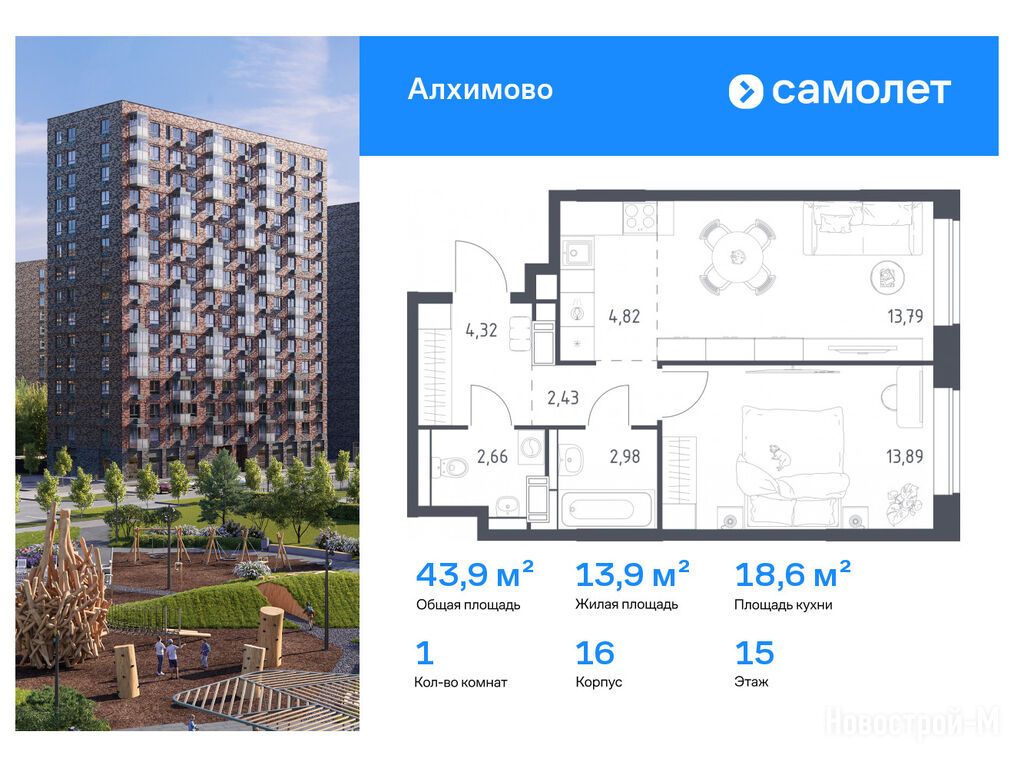 Продается однокомнатная квартира в новостройке ЖК «Алхимово» по адресу Москва, ТиНАО, Новомосковский АО, Рязановское С/П, пос. Рязановское, вблизи д. Алхимово, ЖК «Алхимово», корп. 16. Общая площадь квартиры - 43.9 кв. м. Тип проекта, по которому построен дом — Монолитно-кирпичный, компания-застройщик — Группа «Самолет», ООО СЗ «Самолет-Алхимово». Стоимость квартиры — 12 005 100 руб. Способы оплаты можно уточнить у продавца. Более подробная информация по телефону.